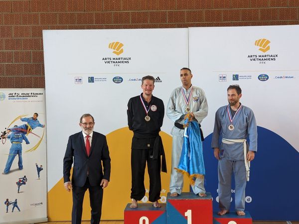 | | | Très beau weekend pour l'équipe compétition AAMT, qui a participé aux championnats de France combat d' Arts Martiaux Vietnamiens - FFK . Yan nous a offert un bel engagement et une détermination sans faille pour sa première participation. Pour notre jeune vétéran Cyril, heureuse prestation car il finit : Vice-champion de France combat de sa catégorie Bravo d' avoir si bien représenté le Tinh Vo Dao. |